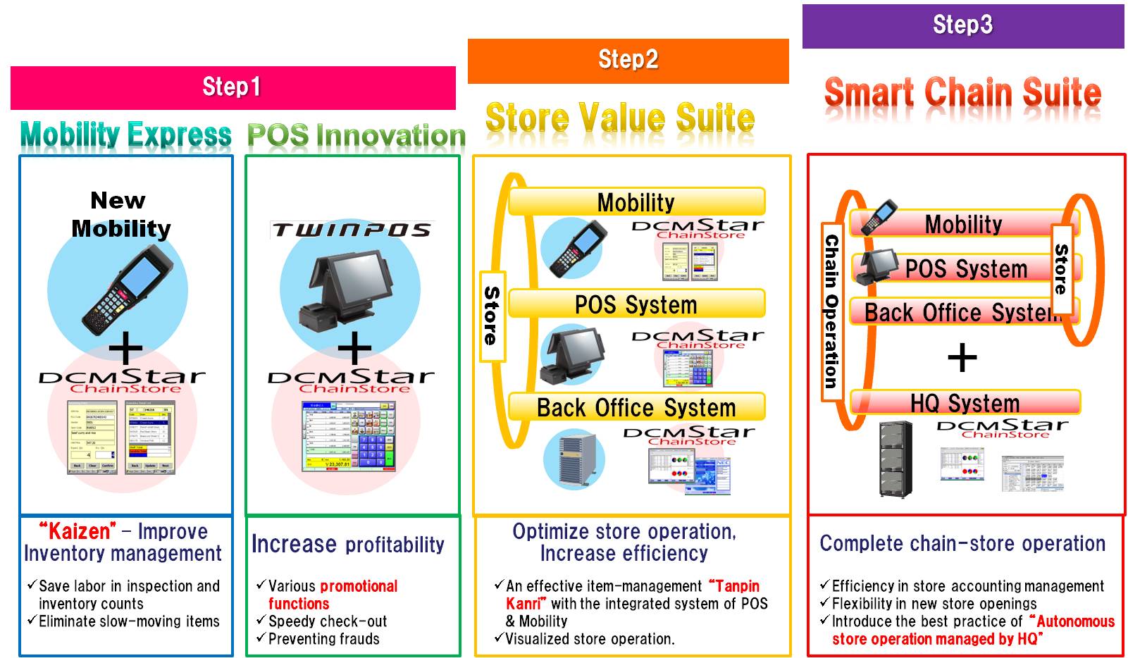 The market and the consumers are changing rapidly, and retail systems need to be always up-to-date. In order to keep up to the trend, retailers can not spend time on developing the system after studying the market. With DCMStar/ChainStore, retailers can deploy the system quickly and grow fast, as it provides them with both software and hardware, equipped with essential retail functions and know-how, in a package.