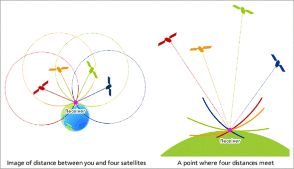 The term “positioning” means to measure the location of an object. Users receive positioning signals from four satellites, and the distance between them and the satellites is then measured.
