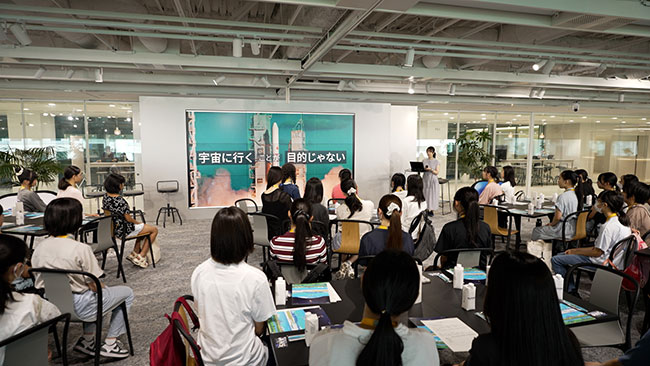 While the eyes of some students lit up when one of the NEC employees introduced herself, stating, “I design robotic arms used at the International Space Station,” others nodded deeply as another employee said, “I feel incredibly fortunate that someone like myself, who has a humanities background, is now working in the field of space, something I once gazed at through a telescope as a child.”