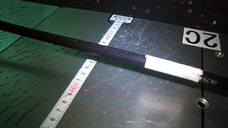 To simulate the aging of cables, the fasteners are gradually loosened to induce wave-induced vibrations. According to Mizuguchi, "These experiments were a major achievement as they revealed the usefulness of optical fiber sensing for submarine power cables."