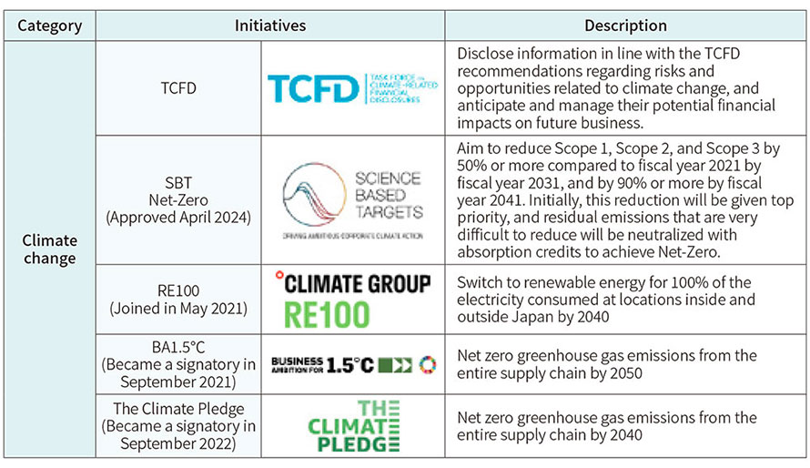 - *5An initiative established by four organizations: Carbon Disclosure Project (CDP), United Nations Global Compact (UNGC), World Resources Institute (WRI), and World Wide Fund for Nature (WWF). The initiative encourages companies to set science-based targets for reducing CO2 emissions