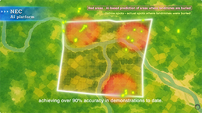 NEC’s AI-based technology for detecting buried landmines was featured in both the official public policy video and the working paper.