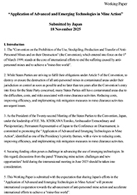 From December 1 to 5, 2025, the 22nd Meeting of the States Parties to the Anti-Personnel Mine Ban Convention (Ottawa Convention) was held in Geneva, Switzerland. During the conference, one of the Chair’s (Japan’s) priority themes—“Application of Advanced and Emerging Technologies in Mine Action” was presented.