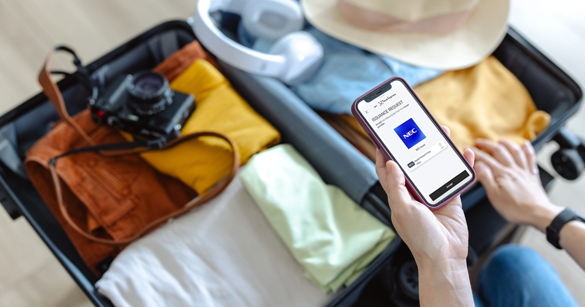 A traveler’s smartphone is also critical in the Truly Seamless Travel process. It can be used to complete check-in processes even before passengers arrive at their airports. Part of the NEC solution that further enhances security across these processes is providing each passenger with a personal, de-centralized digital wallet to store their credentials which include passport, visas, boarding passes, and biometric information.