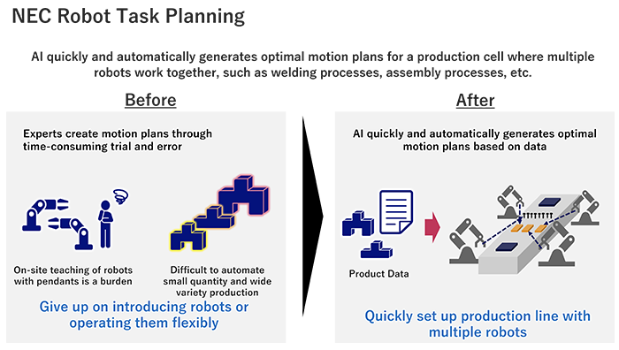 Traditionally, the creation of plans for coordinating the motion of multiple robots was done manually by skilled engineers through a process known as teaching. This process is extremely complex, and in manufacturing sites, designing the motion plan for robots to produce a single product requires substantial cost. As a result, there are many delays in launching production lines that use multiple robots.