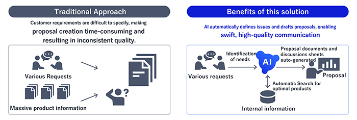 In recent years, the rapid evolution of generative AI and cloud technologies has accelerated DX across various industries, including manufacturing and finance, leading to increased adoption of sales support systems. Meanwhile, the diversification of both customer needs and the services/solutions offered makes it imperative to enhance the efficiency and quality of sales activities to deliver optimal results for customers. This creates a pressing need for DX to streamline sales operations.