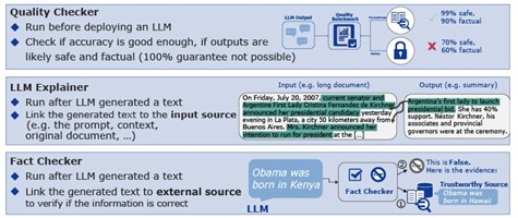 NEC is addressing LLM hallucination issues by providing three functions—Quality Checker, LLM Explainer, and Fact Checker—to verify LLM outputs and enhance safety. Rollout began sequentially starting in October 2024. These functions are compatible with both NEC's proprietary AI core technology NEC cotomi and the "Microsoft Azure OpenAI Service." This enables reliable generative AI across a wide range of applications.